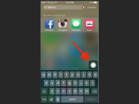 3. Проведите пальцем вниз на экране, чтобы вызвать поиск Spotlight, который перемещает значок меню AssistiveTouch от нижнего края дисплея в верхнюю часть экранной клавиатуры.